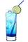 The Blue Lagoon drink is made from vodka, blue curacao and lemon-lime soda, and served in a highball glass.