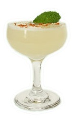 The Island Cocktail is made from Pisco, St-Germain elderflower liqueur, grapefruit juice and lemon juice, and served in a chilled cocktail glass.